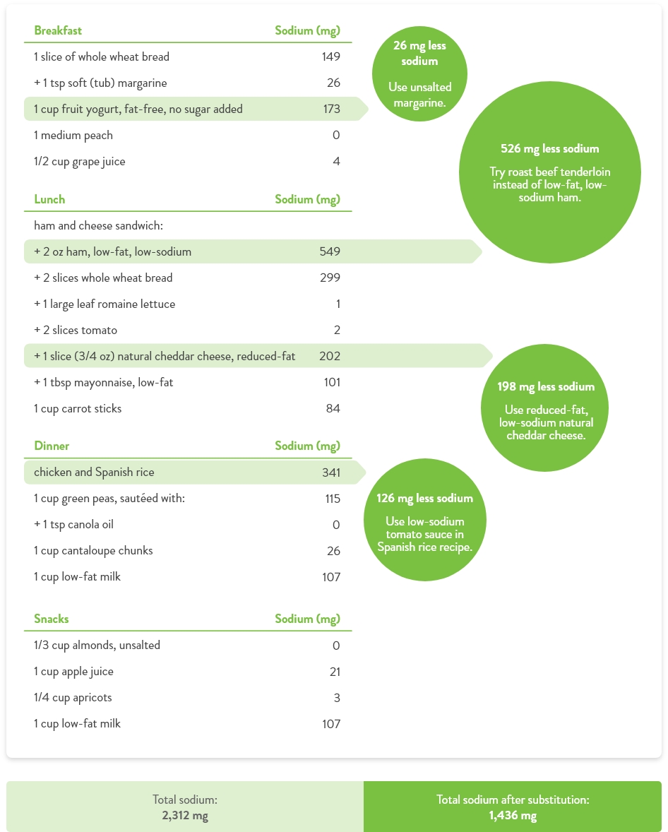 An example of the DASH diet and how to substitute some food items to reduce sodium intake3
